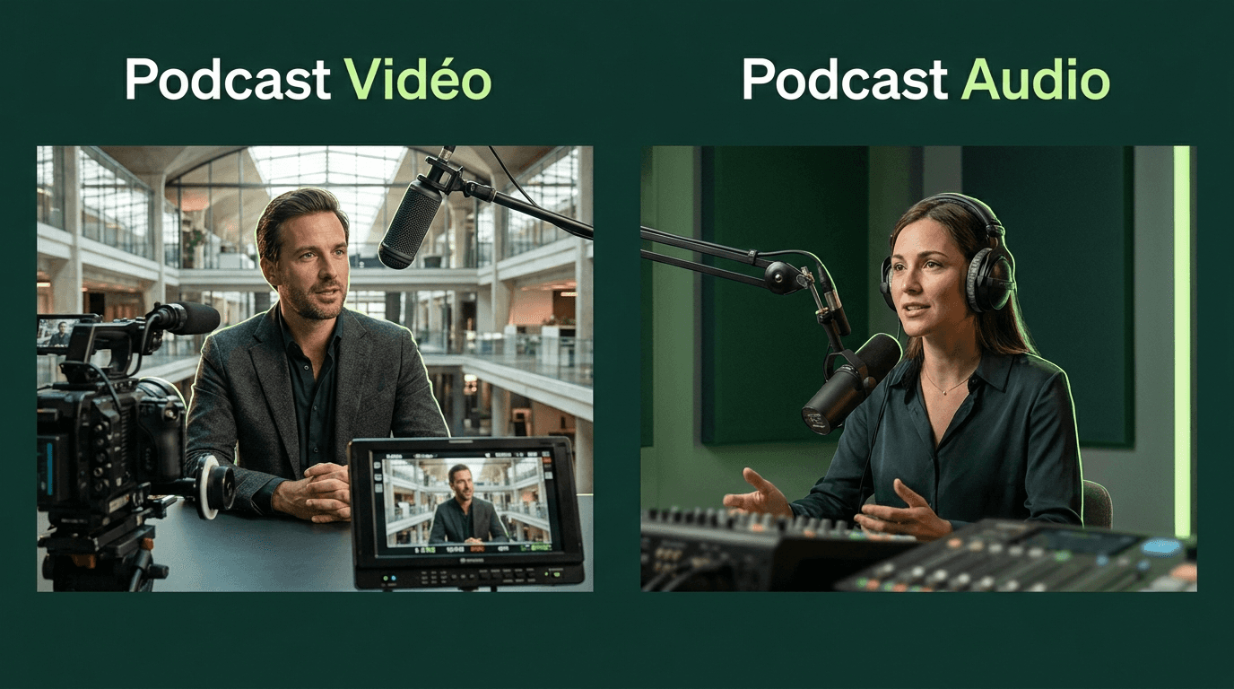 Comparatif complet podcast vidéo vs podcast audio : coûts, audience, ROI, plateformes. Comment choisir le bon format pour votre projet B2B.